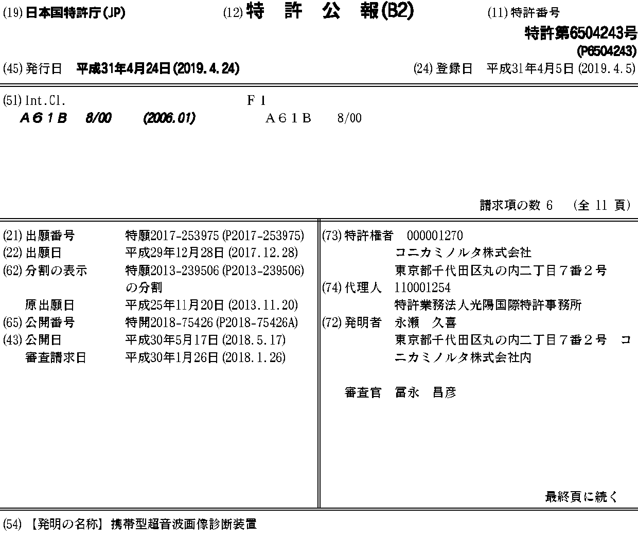 JP2018075426A | JP6504243B2