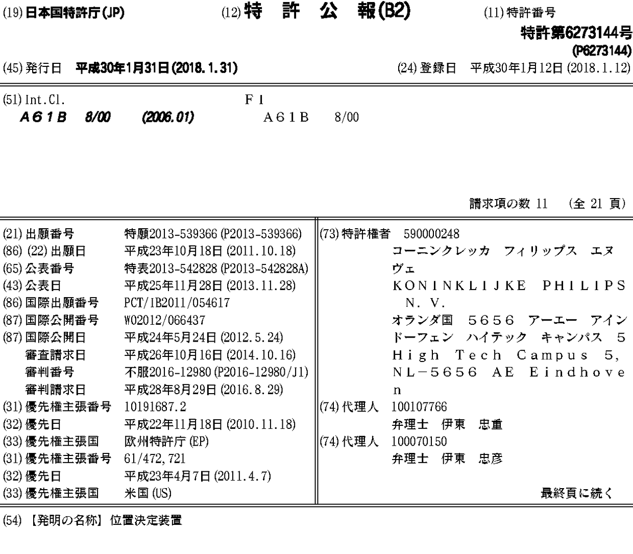 BR112013012197A2 | BR112013012197A8 | CN103220996A | CN103220996B | CN103221148A | CN103221148B | EP2640298A1 | EP2640298B1 | EP2640528A1 | EP2640528B1 | EP3441036A1 | EP3441036B1 | IN3726CHENP2013A | JP2013542828A | JP2013542828A5 | JP2014503239A | JP2014503239A5 | JP5878930B2 | JP6273144B2 | RU2013127518A | RU2013127531A | RU2573443C2 | RU2588290C2 | US10238364 | US10405828 | US20130245433A1 | US20140148703A1 | US20190015072A1 | WO2012066430A1 | WO2012066437A1