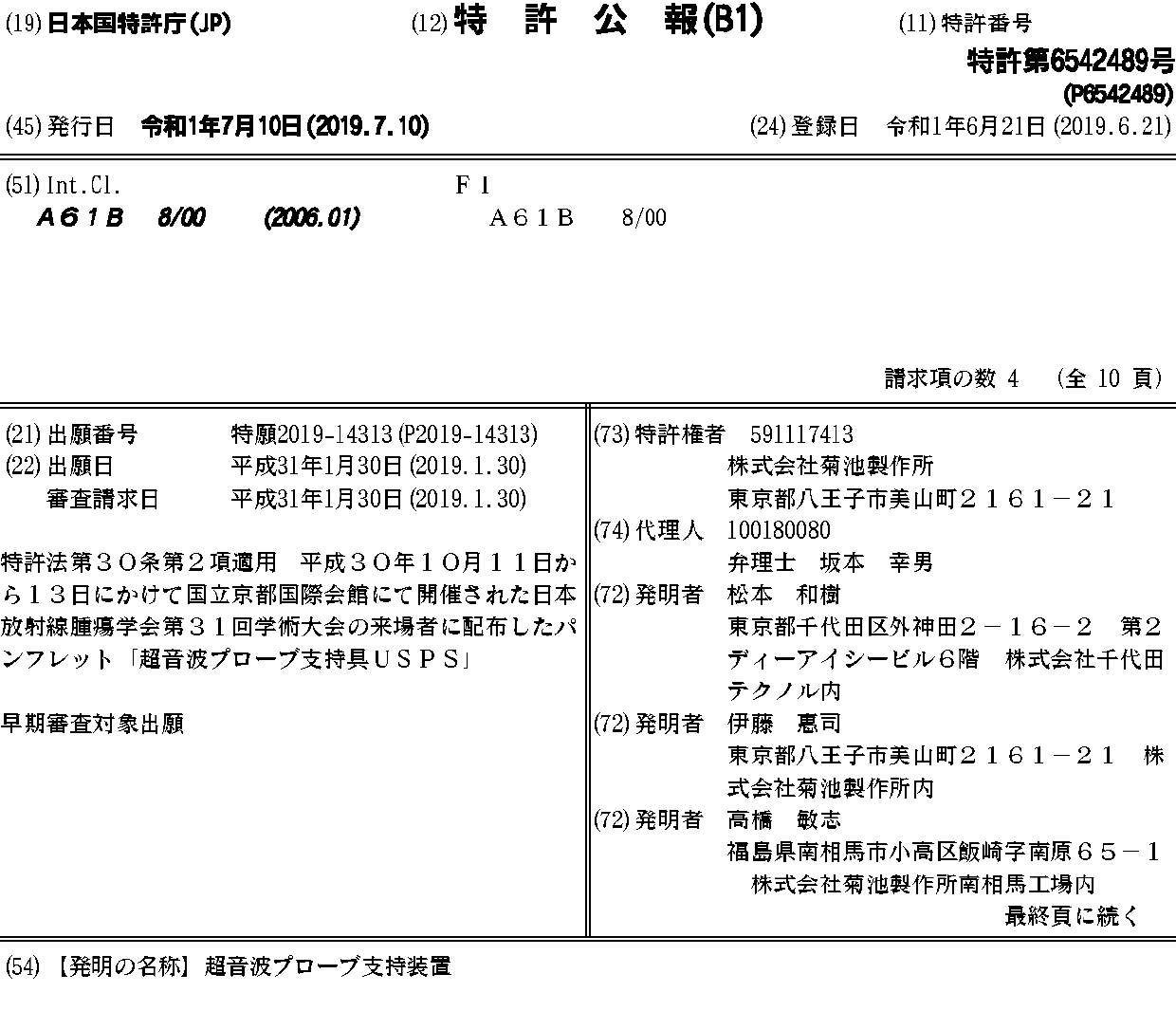 超音波プローブ支持装置