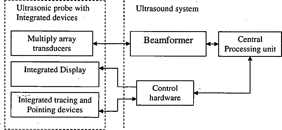 Ultrasonic probe with an integrated display, tracking and pointing devices