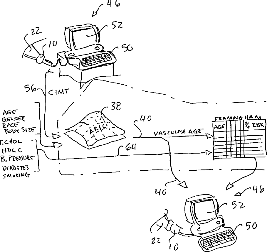 Ultrasonic apparatus and method for providing quantitative indication of risk of coronary heart disease