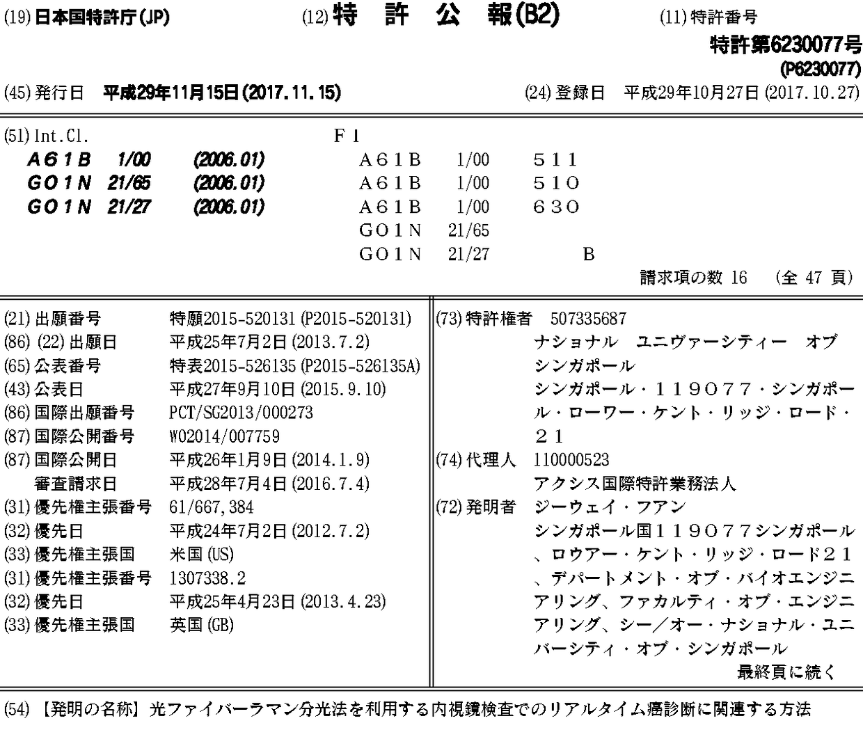 CA2917308A1 | CN104541153A | CN104541153B | EP2870462A1 | EP2870462A4 | GB201307338D0 | GB2513343A | JP2015526135A | JP2015526135A5 | JP6230077B2 | KR101947859B1 | KR1020150036345A | SG11201408793XA | US20150335248A1 | US9931039 | WO2014007759A1