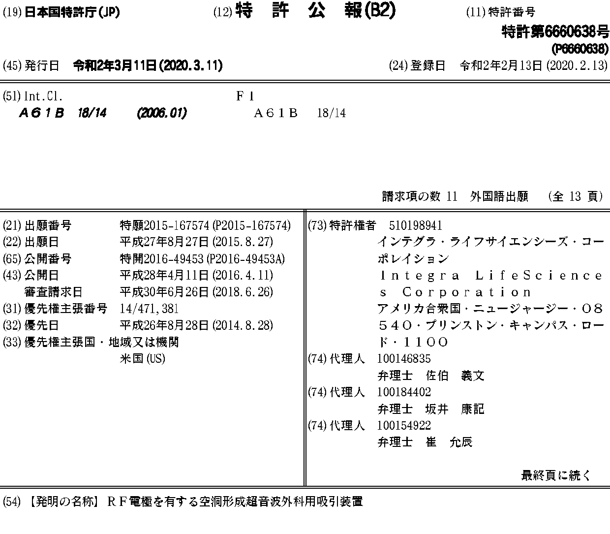 AU2015218499A1 | AU2015218499B2 | CA2901197A1 | EP2997920A2 | EP2997920A3 | EP2997920B1 | JP2016049453A | JP6660638B2 | US20160058501A1 | US20190231418A1