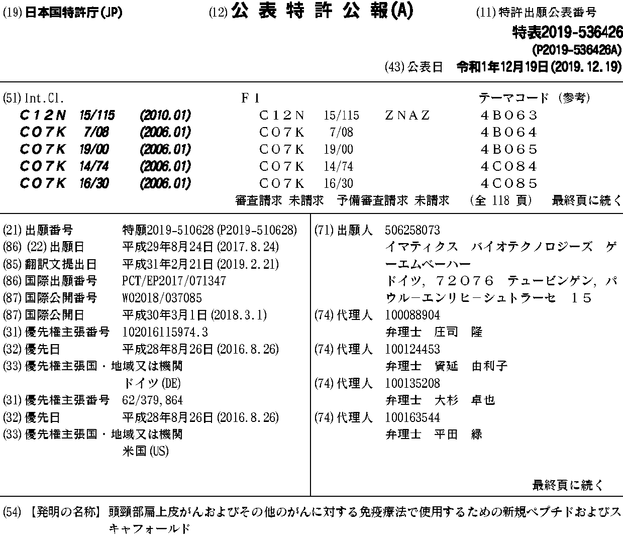 頭頸部扁上皮がんおよびその他のがんに対する免疫療法で使用するための新規ペプチドおよびスキャフォールド