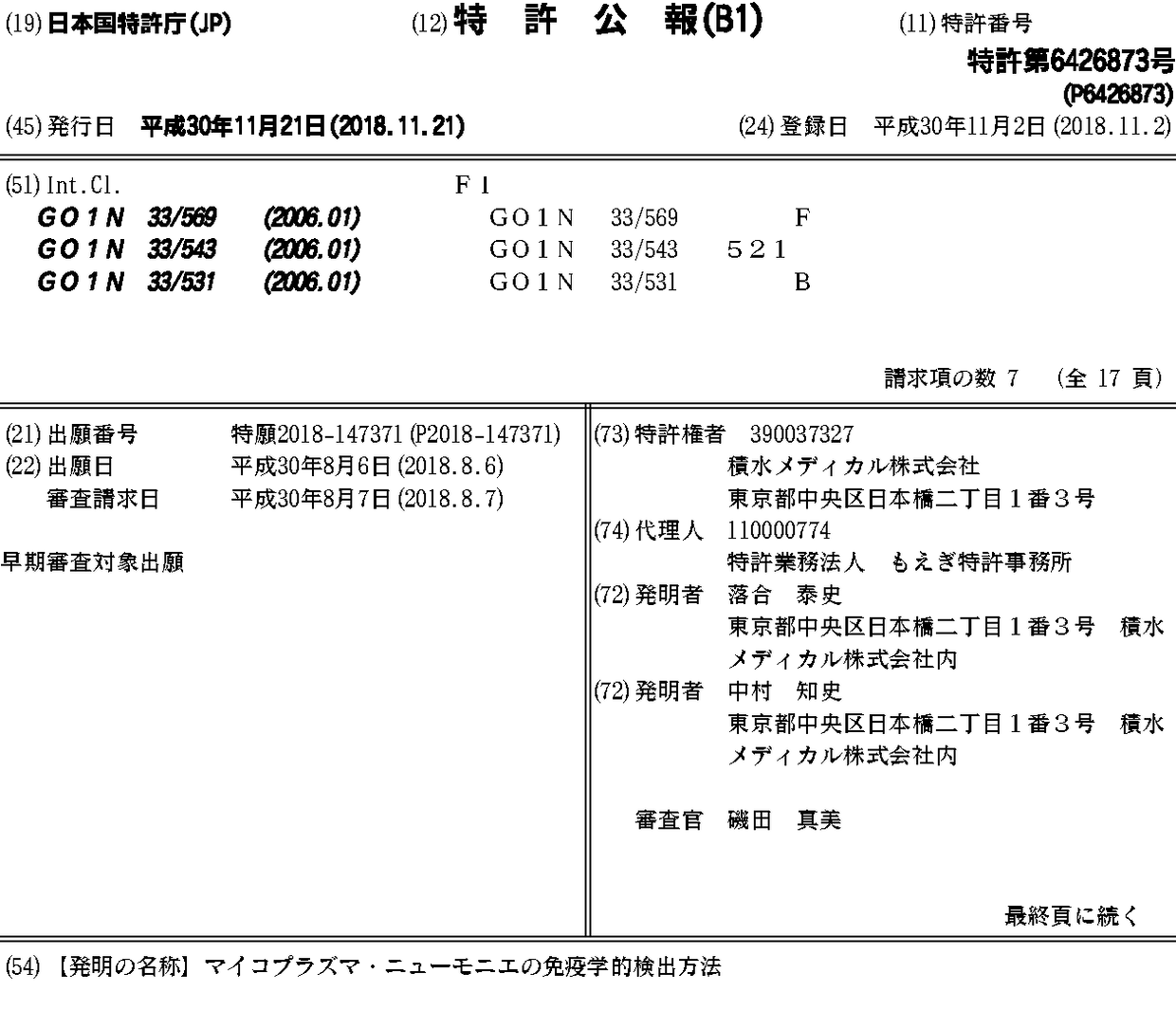 マイコプラズマ·ニューモニエの免疫学的検出方法