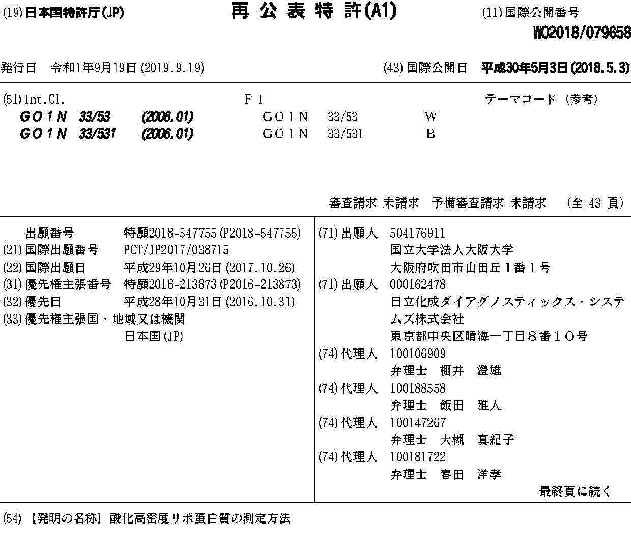 国立大学法人大阪大学 | 日立化成ダイアグノスティックス·システムズ株式会社