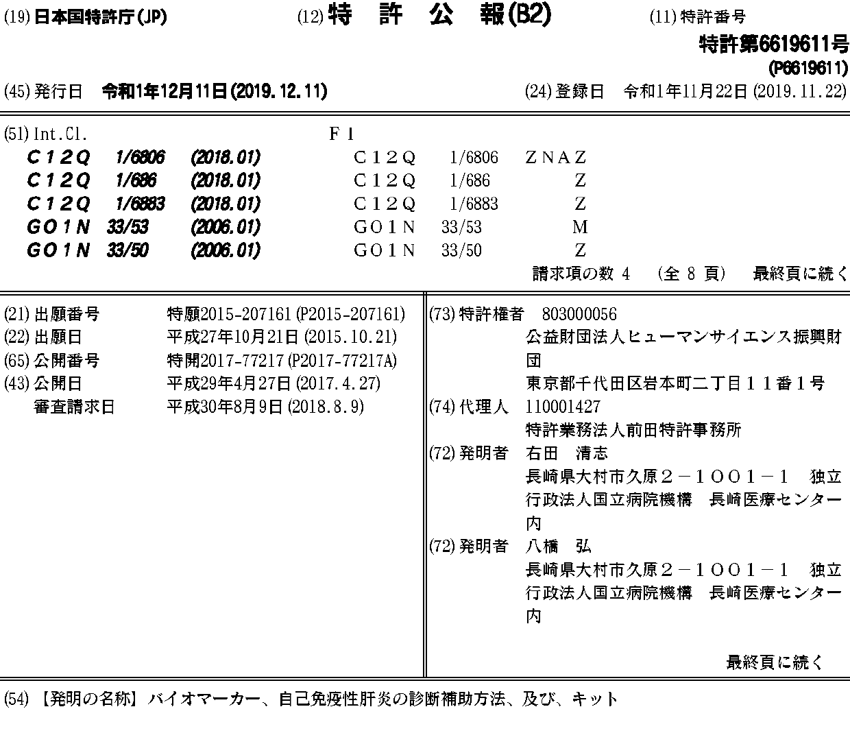 JP2017077217A | JP6619611B2