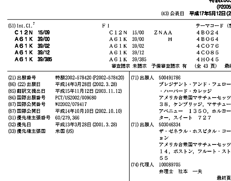 BRPI0208474A2 | CA2442020A1 | CA2442020C | CN100560720C | CN101694497A | CN101694497B | CN1636060A | EP1536828A2 | EP1536828A4 | EP1536828B1 | JP2005512505A | JP2005512505A5 | JP2010042008A | JP5270500B2 | US20050220807A1 | US20100311105A1 | US7754219 | US8333953 | WO2002079417A2 | WO2002079417A3 | ZA200307467B