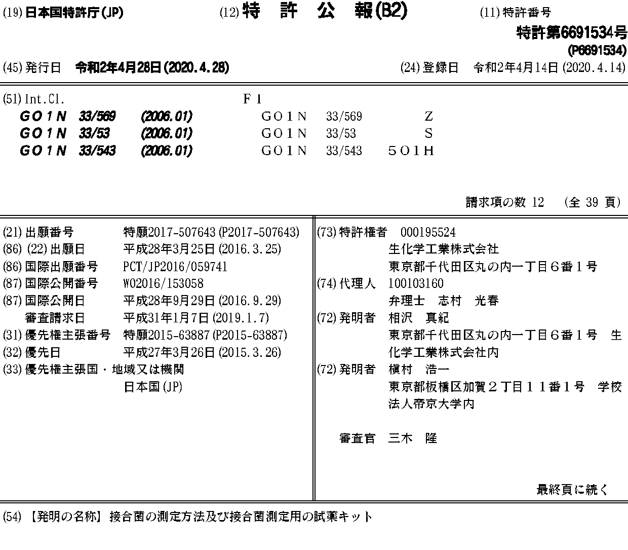 EP3276352A1 | EP3276352A4 | JP6691534B2 | JPWO2016153058A1 | US20180120315A1 | US20190154686A2 | US20190339270A2 | WO2016153058A1