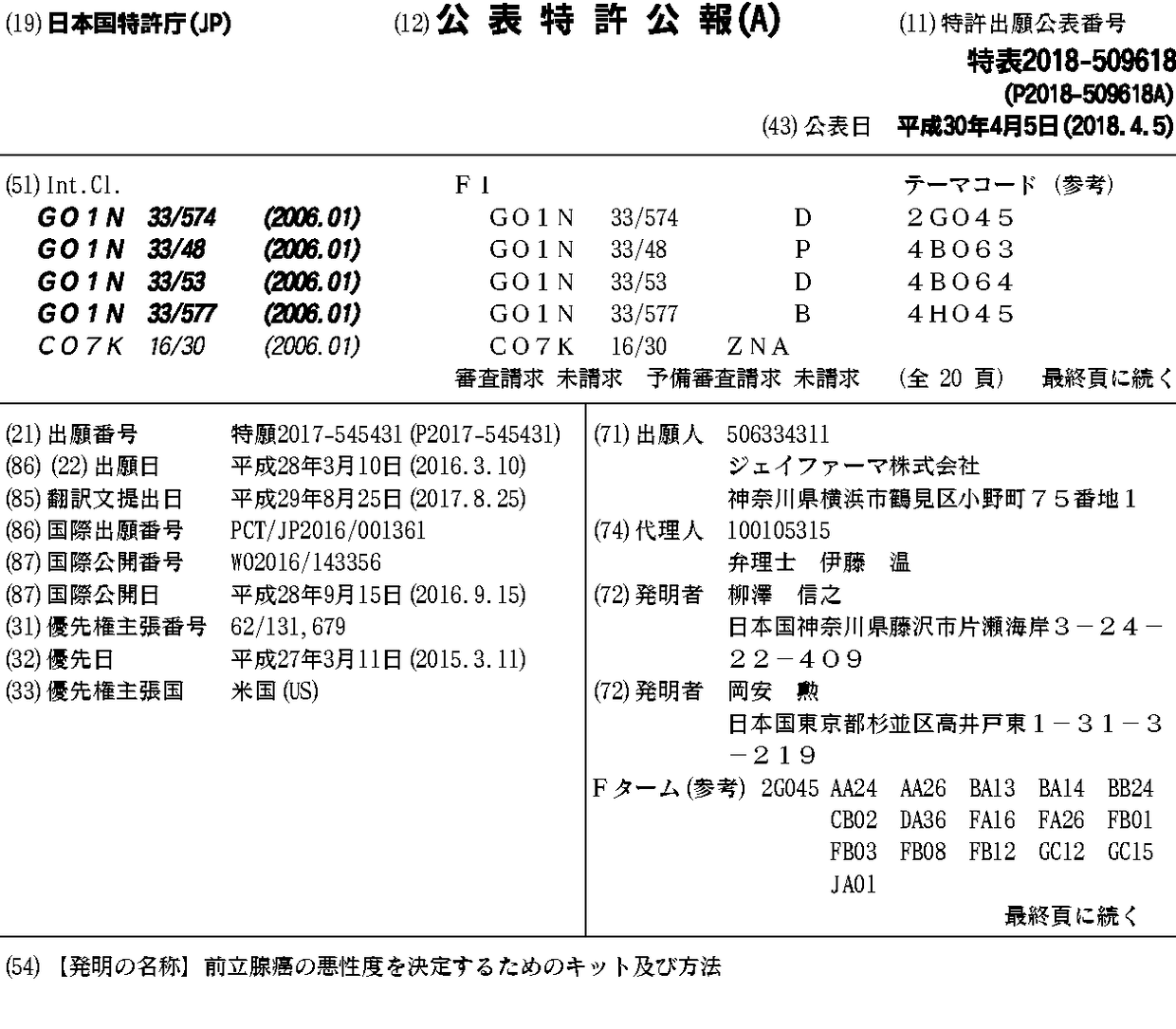 JP2018509618A | JP2018509618A5 | JP6683722B2 | US20190227070A1 | WO2016143356A1