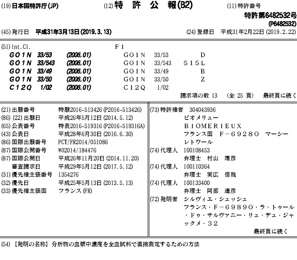AU2014267078A1 | AU2014267078B2 | CN105378483A | CN105378483B | EP2997381A1 | EP2997381B1 | FR3005505A1 | FR3005505B1 | JP2016519316A | JP6482532B2 | KR1020160006701A | US10132800 | US20160116463A1 | US20190056387A1 | WO2014184476A1