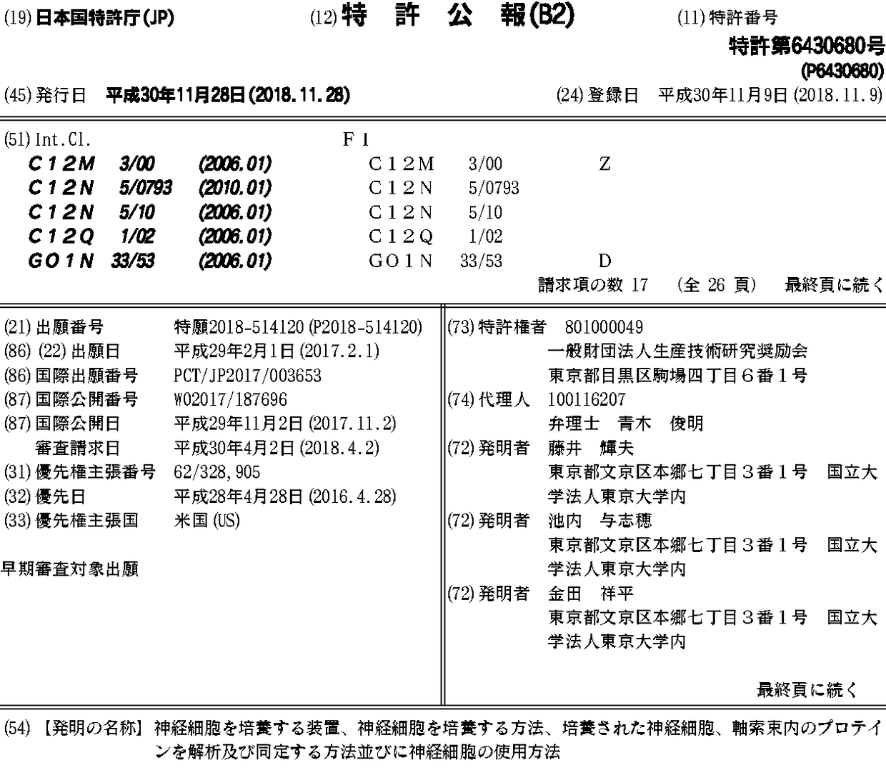 CN109219655A | EP3450540A1 | EP3450540A4 | JP2019037245A | JP6430680B2 | JPWO2017187696A1 | US20190127672A1 | WO2017187696A1