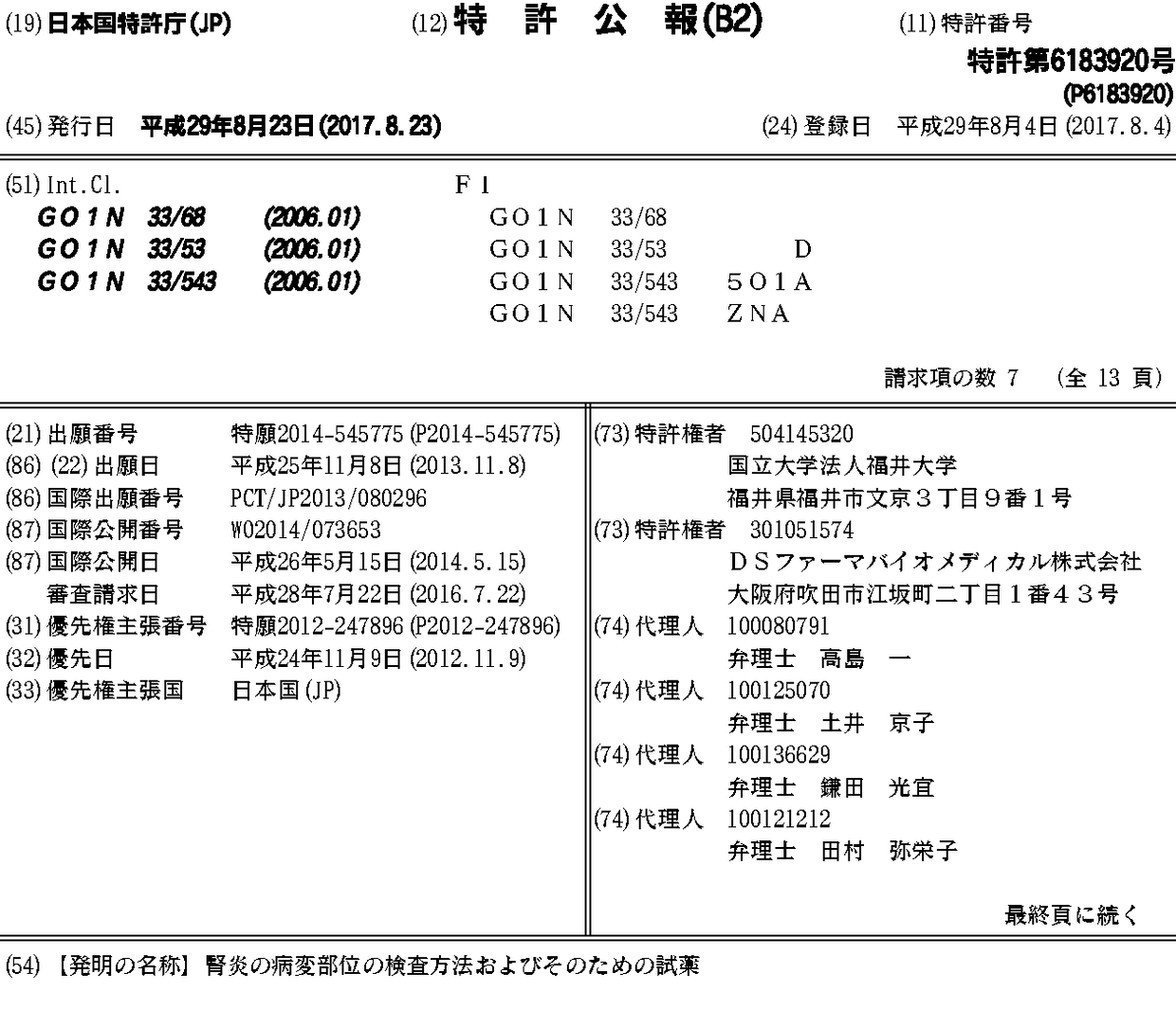 国立大学法人福井大学 | DSファーマバイオメディカル株式会社