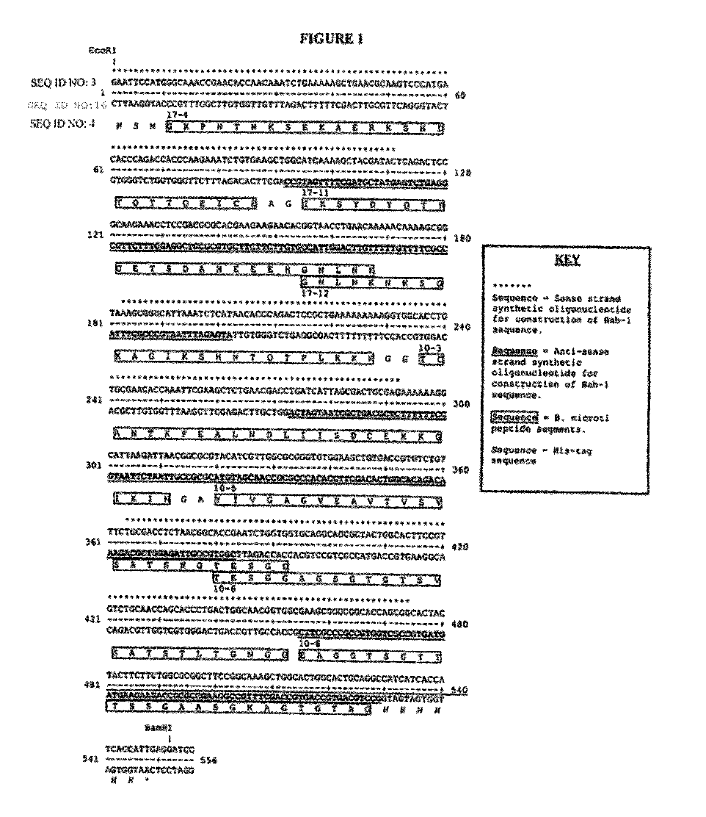 Compositions for detecting antibodies to Babesia microti and methods of uses thereof