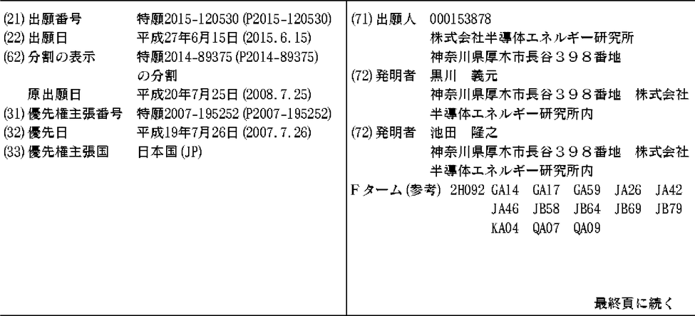 CN101355089A | CN101355089B | JP2009049399A | JP2009049399A5 | JP2014197197A | JP2015228028A | JP2017223965A | JP2018063434A | JP2018159952A | JP2018159952A5 | JP5766329B2 | JP6181109B2 | JP6348650B2 | KR101493300B1 | KR1020090012118A | TW200924198A | TW201539767A | TWI585983B | TWI614903B | US20090026454A1 | US7897971