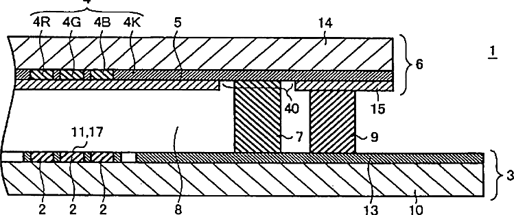 Liquid crystal display device with a loop of black matrix material surrounding an opposing electrode