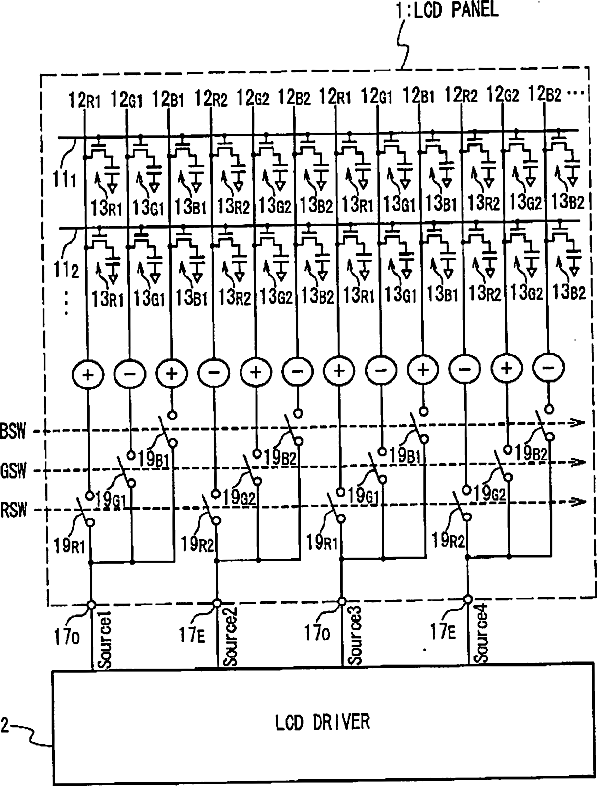 LCD panel drive adopting time-division and inversion drive